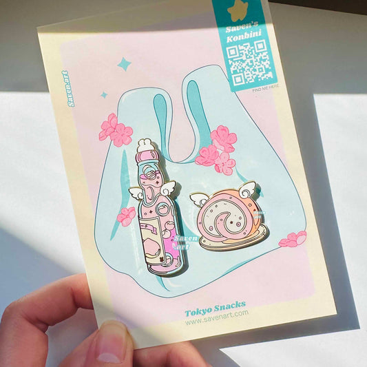 This collection is inspired by all the delicious snacks and goodies from Japan. Not only are they incredibly tasty, but their packaging and designs are irresistible. I am a huge foodie and I invite you to join me in creating this enamel pin snack collection :)